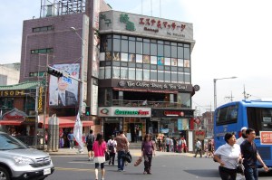 I exchanged some money. I bought a book on the history of Korea at a bookstore called What the Book? Then we headed to Coffee Bean. That’s right. There are Coffee Beans here. Ne! (Yes!) It only took about 12 minutes to order, make that explain that I wanted a bag of coffee (kuh-pi) grounded up and a separate iced blended mocha with soy. I spoke to 3 different people behind the counter. Finally, I got my drink and my grounded coffee. It was a funny experience. The last counter person and I shared a laugh. It was so worth it. I need to learn Korean fast!