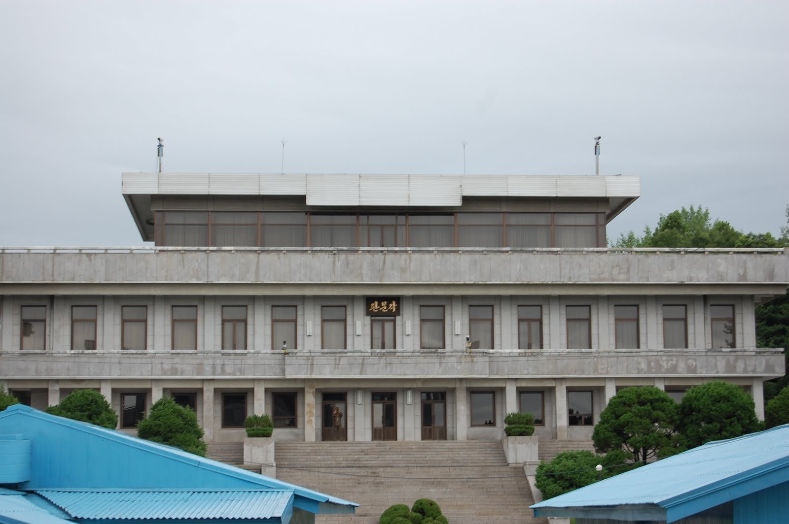 We then were able to take more pictures from a distance as another tour group entered the Conference Room. A few soldiers outside stand facing the North with only one eye to watch the other side. These soldiers in their set positions are seriously like mannequins.